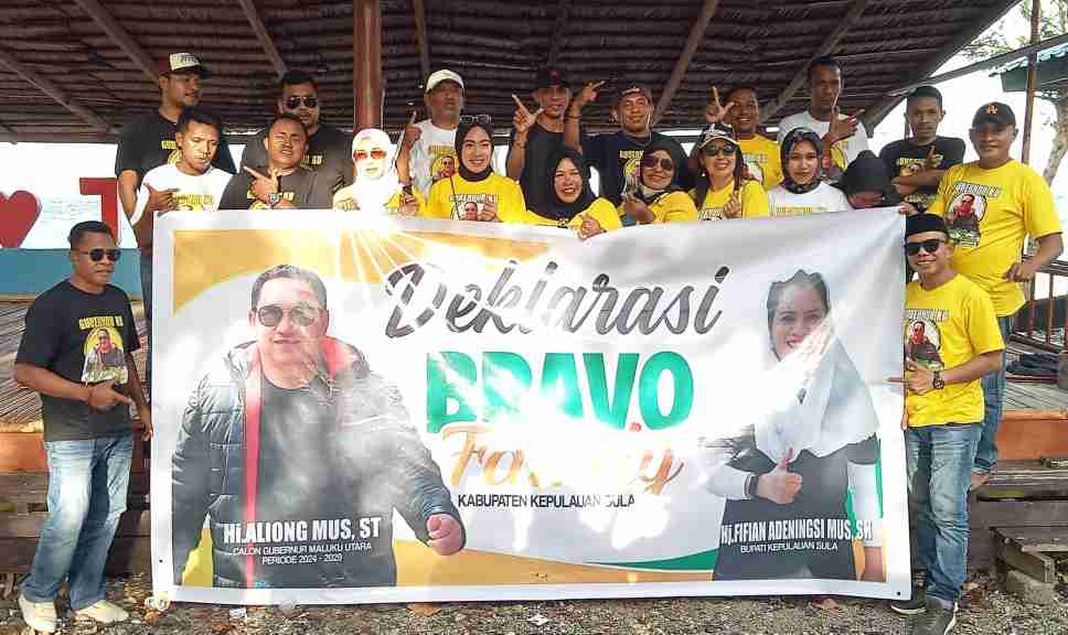 “kami yang menyatu dalam Bravo Vamily ini adalah orang Sula yang mau menunjukkan eksistensi orang-orang di negeri senapan yaitu Sula, Mangoli dan Taliabu juga siap dan mampu memimpin negeri kieraha Maluku Utara dan itu ada pada sosok bapak H. Aliong Mus, dan kami juga menilai kepemimpinan ibu Ningsi masih sangat baik dan layak pimpin Sula dua periode,”
