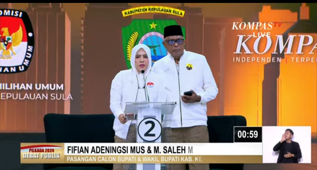 SANANA, DADIKANUSANTARA.COM – Fifian Adeningsi Mus dan Saleh Marasabessy (FAM-SAH) Pasangan Calon bupati dan wakil bupati kabupaten Kepulauan Sula (Kepsul) nomor urut 2 kembali tampil memukau di debat publik ke dua yang digelar di Jakarta jumat, (15/11/2024).