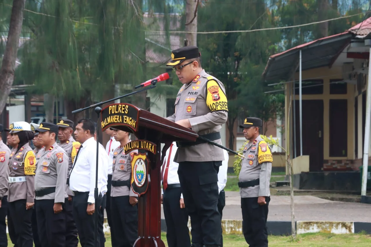 Apel yang berlangsung di lapangan apel Polres Halteng itu dihadiri Waka Polres Halteng Kompol Said Aslam.,S.I