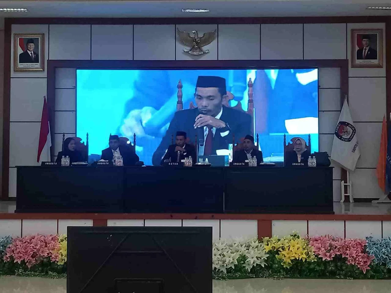 Meski tidak bisa hadir langsung di ruang pleno, KPU juga berikan kesempatan kepada bupati terpilih Ikram Malan Sangadji melalui zoom untuk menyampaikan sambutan.