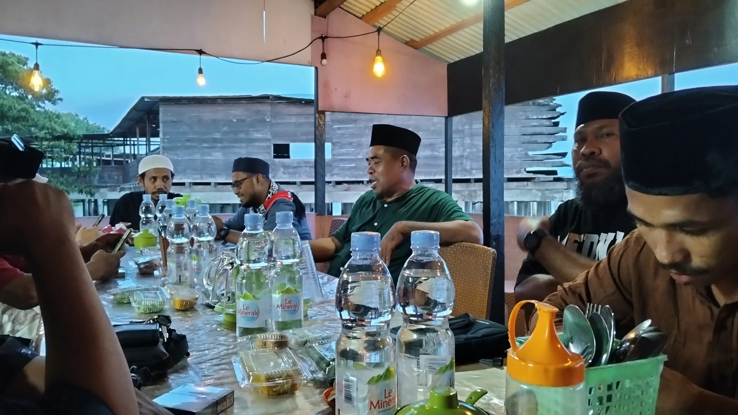 suasana buka bersama antara Kapolsek Sanana AKP. Junaidi Sawal dan Para Wartawannya