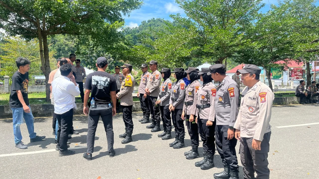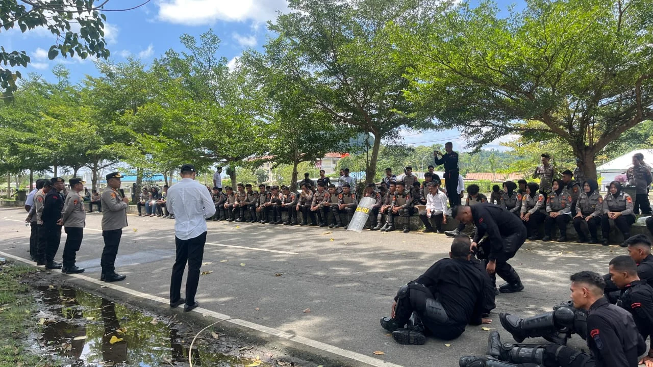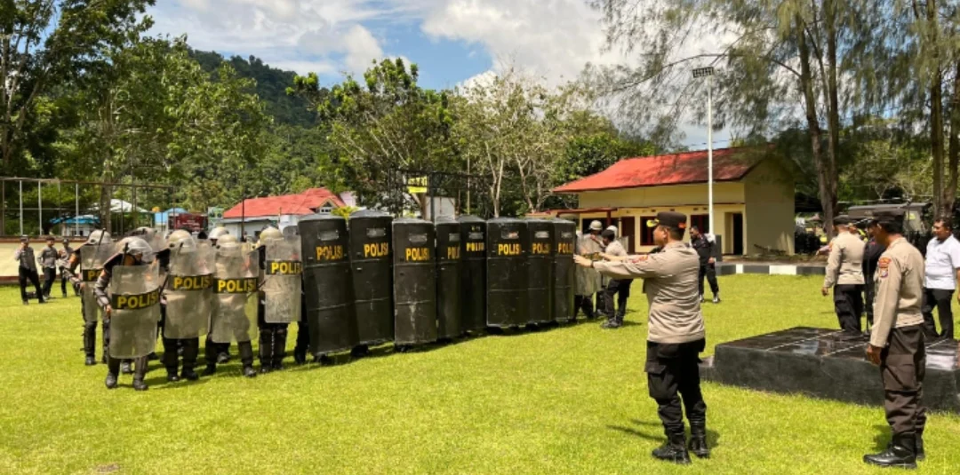 Kapolres Halteng AKBP Aditya Kurniawan samaikan kegiatan latihan gladi posko, TFG dan simulasi pengamatanan unras ini dilakukan dengan tujuan persiapan penanganan aksi may day 2025.