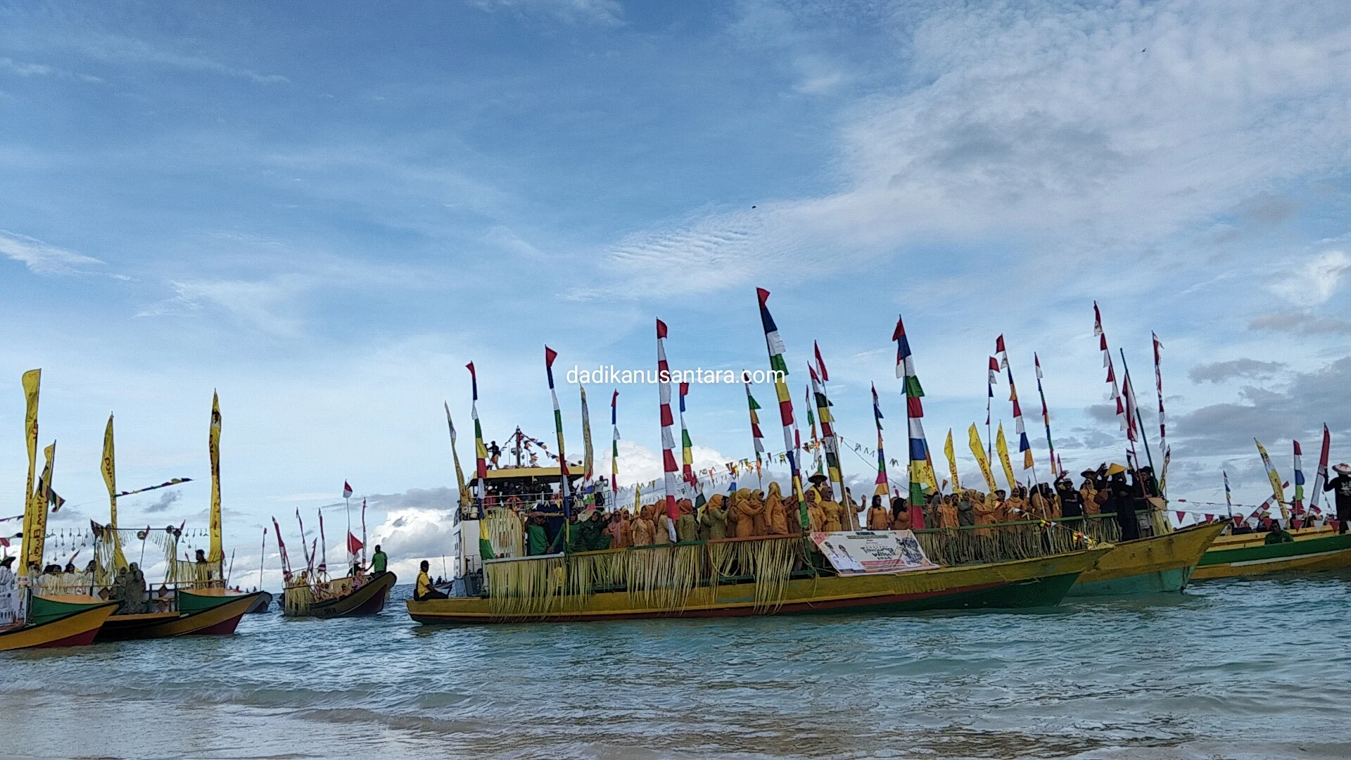Ratusan perahu hias yang ditumpangi 1500 penari tarian ‘Laka Baka’ yang mewarnai laut di pembukaan FTW dapat tanjung wakapenghargaan museum rekor Indonesia pada sabtu, (14/12/2024)